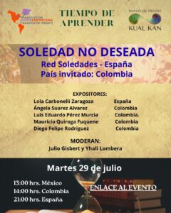 El programa estará dedicado además a COLOMBIA, con invitados ponentes de este país activos con su investigación y sus organizaciones contra la Soledad No Deseada en este país, y que son los siguientes: