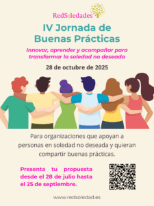Red Soledades tiene previsto celebrar sus IV Jornadas Nacionales el 28 de octubre de 2025. Todas las entidades que deseen exponer sus casos de éxito o buenas prácticas podrán hacerlo compartiendo así sus experiencias, logros y aprendizajes recientes. Las ponencias tendrán como tema: “Innovar, aprender y acompañar para transformar la soledad”.